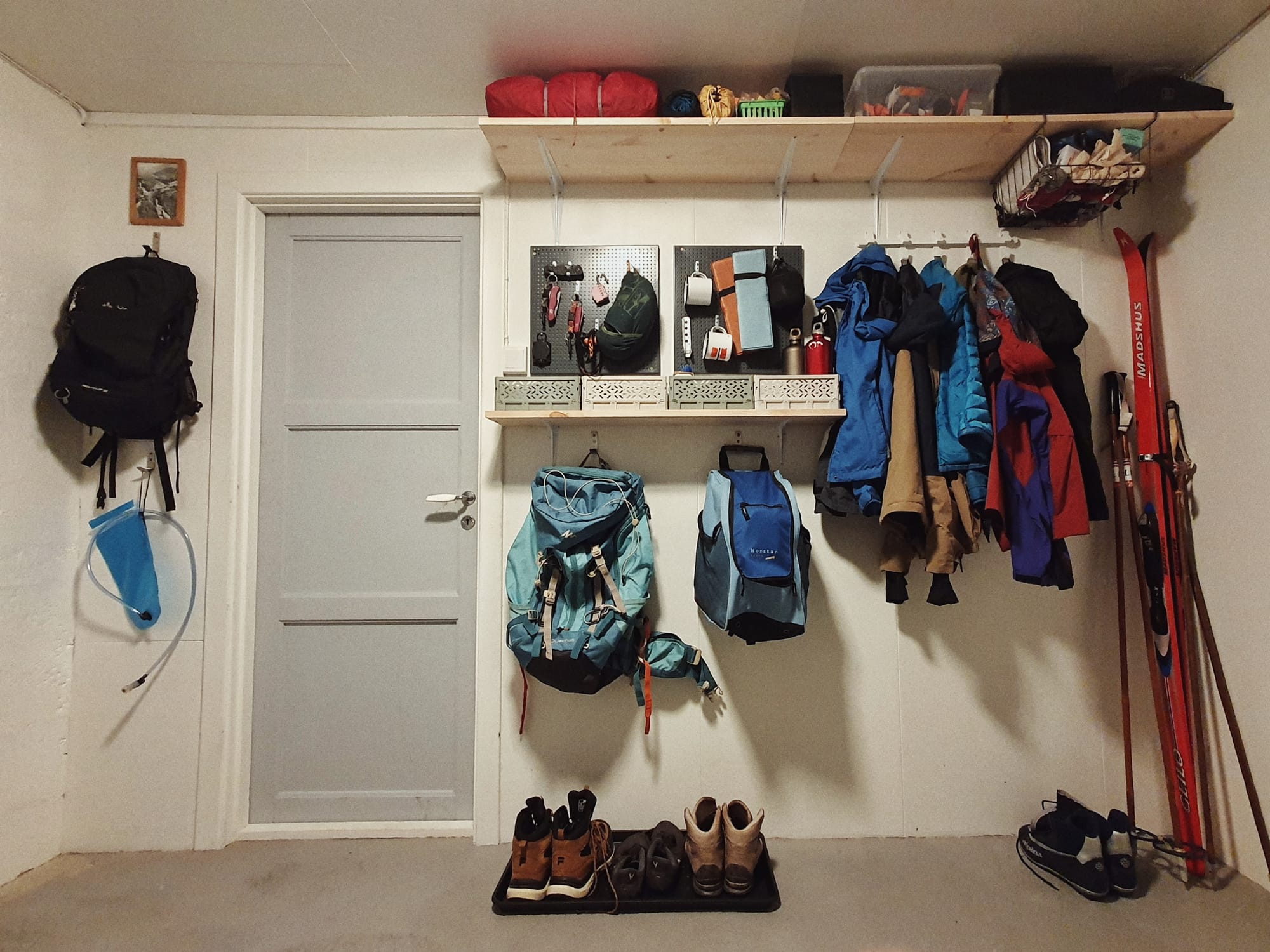 Bastelprojekt der letzten Woche: Meine Gear Wall im Keller. Wollte schon so lange meine ganze Outdoor-Ausrüstung ordnen und sortieren. Nachdem ich einen groben Plan hatte, ging es zum Baumarkt (mit dem Bus, versteht sich). Vor dem Holzregal dann die Überlegung, ob ich die schmaleren Bretter nehme oder wohl auch die breiteren getragen kriege? Kurzer Gewichtstest (passt schon 😅) - und dann ging es damit die 500m zur Bushaltestelle zurück. Alle, die dort wohnen, dürften mittlerweile den Anblick von mir gewöhnt sein, wie ich mich da mit irgendwas, was definitiv zu groß für die Tasche ist, in der ich es versuche zu tragen, abschleppe. Wurde vom Busfahrer natürlich auch direkt kommentiert und mir beim Aussteigen noch viel Erfolg mit den Regalen gewünscht (ein Glück, dass ich bisher immer nur einen Sitzplatz zahlen musste 😂). Der Muskelkater war es aber wert, denn ich konnte fast alles genauso anbringen, wie ich es geplant hatte und freue mich jetzt jedes Mal, wenn ich in den Keller gehe.
